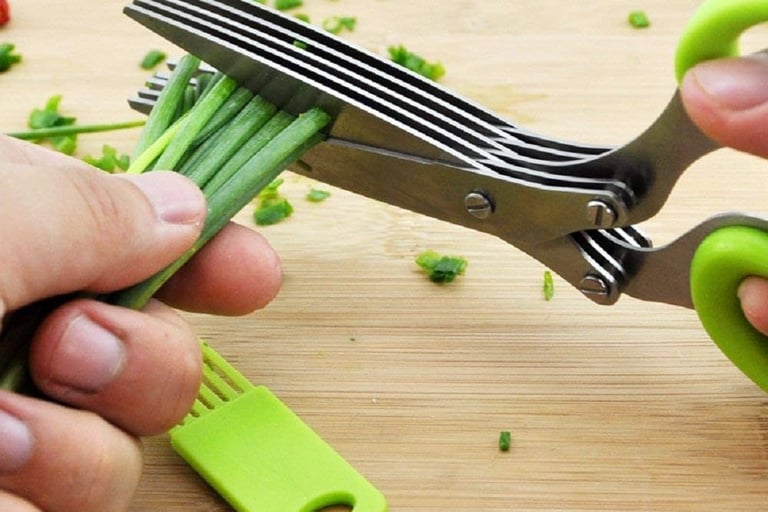 It doesn’t feel like using normal scissors at all. Those 5 blades cut everything into small, even pieces instantly. No messy chopping board, no herbs sticking to the knife, no uneven chunks.